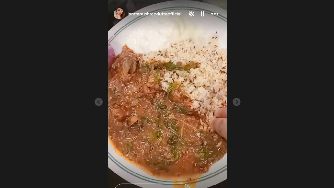 तनुश्रीने पोस्ट शेअर करत सांगितलं की तिने श्रावणातील उपवास केला होता आणि संध्याकाळी 7 वाजता उपवास सोडला होता. उपवास सोडताना तिने भात, काळी डाळ आणि मटण खाल्लं होतं. तिच्या मते, जेवणातील हे कॉम्बिनेशन तिच्या मानसिक आरोग्यासाठी सर्वोत्तम आहे आणि बंगाली असल्याने तिच्या सांस्कृतिक पार्श्वभूमी आणि आयुर्वेदिक पोषण या दोन्हींनुसार ते चांगलं आहे.