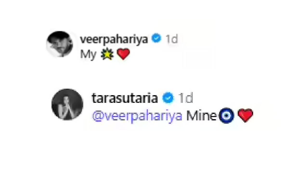 तारा सध्या तिच्या एका म्युझिक व्हिडीओमुळे चर्चेत आली आहे. या म्युझिक व्हिडीओसाठी तिने गायक एपी ढिल्लनसोबत खास फोटोशूट केलंय. त्याचे फोटो तिने इन्स्टाग्रामवर पोस्ट केले. ताराच्या या फोटोंवर वीरने केलेल्या कमेंट्सने सर्वांचं लक्ष वेधलं. ‘माझी’ असं लिहित त्याने स्टार आणि हृदयाचा इमोजी पोस्ट केला. त्यावर तारानेही ‘माझा’ अशी प्रतिक्रिया दिली. या कमेंट्समुळे दोघांचं रिलेशनशिप जगजाहीर झाल्याचं म्हटलं जात आहे.
