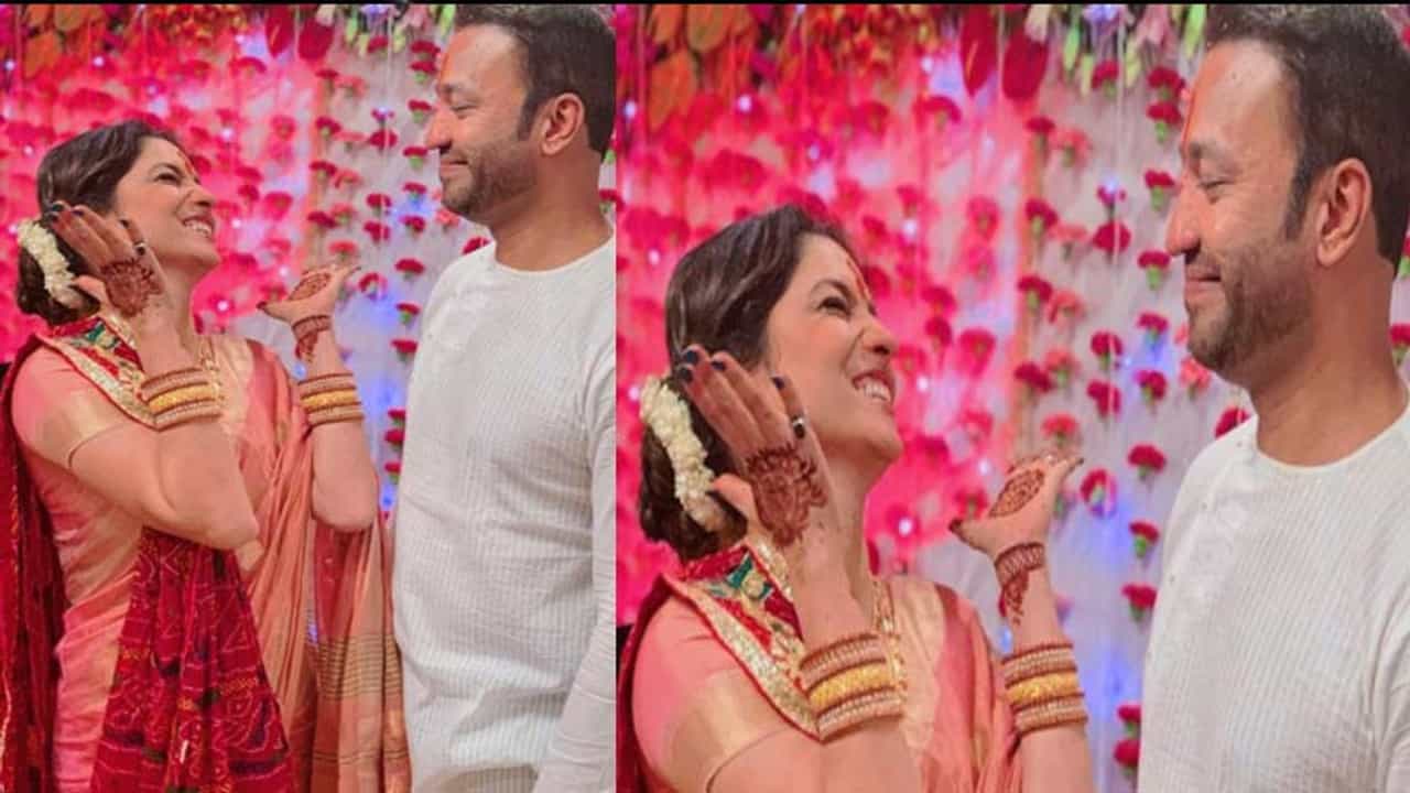 अंकिताने विक्की जैनबरोबर शेअर केलेल्या फोटोमध्ये तिने लाल रंगाची साडी परिधान केली आहे. यावेळी अतिशय पारंपारिक लूकमध्ये दिसत आहे. तर सोबत उभा असलेला विक्कीदेखील व्हाईट आऊटफिटमध्ये दिसला आहे.