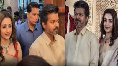 साऊथ सुपरस्टार थलपती विजयवर पत्नी संगीताने विवाहबाह्य संबंधाचा आरोप करत कोर्टात घटस्फोटासाठी याचिका केली होती. त्यानंतर काही दिवसांतच विजय ‘एजीएस’ या चित्रपटाचे निर्माते कलपथी सुरेश यांच्या मुलाच्या रिसेप्शनमध्ये अभिनेत्री तृषा कृष्णनसोबत येऊन सर्वांचं लक्ष वेधलं. या रिसेप्शन पार्टीमध्ये विजय आणि तृषाला एकत्र पाहून सर्वांच्याच भुवया उंचावल्या होत्या. कारण पत्नी संगीताने एक्स्ट्रा मॅरिटल अफेअरचे आरोप केल्यानंतर सोशल मीडियावर विजय आणि तृषा यांचीच सर्वाधिक चर्चा होती. सोशल मीडियावर या दोघांचे फोटो आणि व्हिडीओ तुफान व्हायरल होत आहेत. रिसेप्शनमध्ये पार्टीमध्ये विजय आणि तृषा एकत्रच पोहोचले होते. यावेळी विजयच्या हातात पुष्पगुच्छ होते, तर तृषा इतर पाहुण्यांची गळाभेट घेताना आणि हस्तांदोलन करताना दिसली.