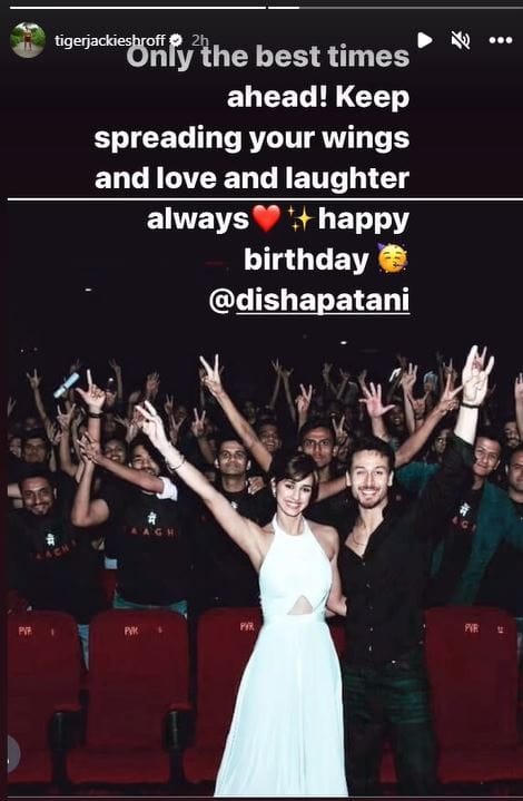 दिशाला वाढदिवसाच्या शुभेच्छा देत अभिनेता म्हणाला, ‘येणारा काळ हा आनंददायी असेल… असं कायम प्रेम आणि आनंद सर्वांसोबत वाटत राहा… वाढदिवसाच्या शुभेच्छा @dishapatani’… टायगरने इन्स्टाग्राम स्टोरीवर दिशासोबत असलेला एक जुना फोटो पोस्ट करत अभिनेत्रीला वाढदिवसाच्या शुभेच्छा दिल्या आहेत.