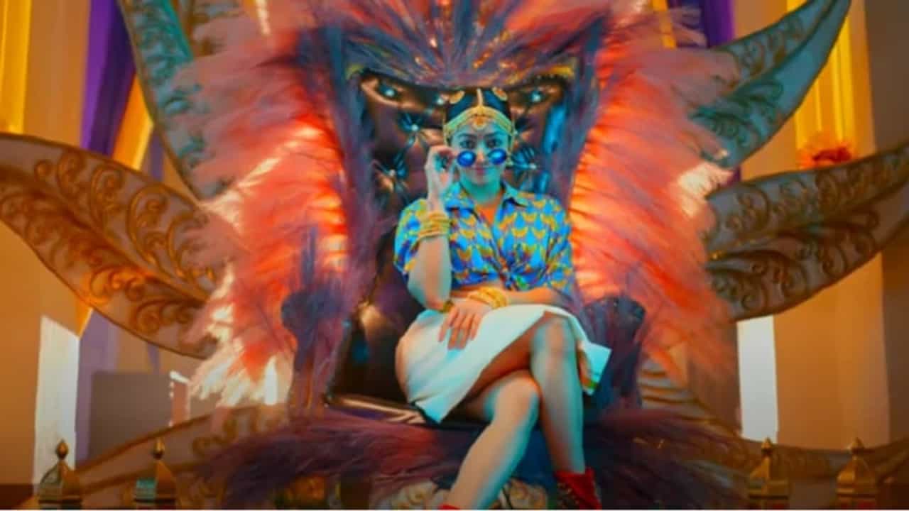 या टीझरमध्ये रश्मिका मंदाना एका हटक्या लूकमध्ये दिसत आहे. गाण्याच्या व्हिडीओमध्ये काम करण्याची ही रश्मिकाची पहिलीच वेळ आहे. या व्हिडीओ टीझरमध्ये रश्मिकाने बरेच दागिने घातले आहे आणि डोक्यावर वेगवेगळ्या रंगाची पगडी बांधली आहे. चाहत्यांनी तिच्या रंगीबेरंगी लूकचे कौतुक देखील केले आहे.