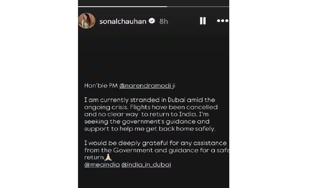 सोनलने शनिवारी तिच्या इन्स्टाग्राम स्टोरीमध्ये एक पोस्ट लिहिली. त्यात तिने म्हटलंय, ‘आदरणीय पंतप्रधान नरेंद्र मोदीजी.. सध्या सुरु असलेल्या तणावादरम्यान मी दुबईत अडकले आहे. विमान उड्डाणं रद्द करण्यात आल्याने भारतात परतण्याचा कोणताही मार्ग स्पष्ट नाही. मला सुरक्षितपणे घरी परतण्यासाठी कृपया मार्गदर्शन आणि मदत करा. मी तुमची खूप आभारी राहीन.’ फक्त सोनलच नाही तर ऑलिम्पिक पदक विजेती पीव्ही सिंधूसुद्धा दुबई विमानतळावर अडकली आहे. पुढील सूचना मिळेपर्यंत सर्व उड्डाणं स्थगित करण्यात आल्याचं तिने सोशल मीडियावर सांगितलं आहे.