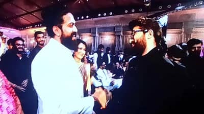 अल्लू अर्जून आणि यशने नुकत्याच झालेल्या एका पुरस्कार सोहळ्यात एकमेकांची भेट घेतली. या दोघांची ही ग्रेट भेट चांगलीच चर्चेत आली आहे. ट्विटरवर या दोघांच्या भेटीचा व्हिडीओ तुफान व्हायरल होत आहे. रॉकिंग स्टार आणि आयकॉनिक स्टारची भेट असे कमेंट्स चाहते करत आहेत. या व्हायरल व्हिडीओमध्ये दोघं एकमेकांशी हस्तांदोलन करत हसत बोलताना दिसत आहेत.