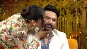 खरं तर, आधी रवीना टंडन कपिल शर्माची चेष्टा करते आणि नंतर उठून कपिलकडे जाते आणि त्याच्या गालावर किस करते. रवीनाची ही स्टाईल पाहून शोमध्ये सगळे हसायला लागतात. थोड्या वेळाने कपिलही हसू लागतो.