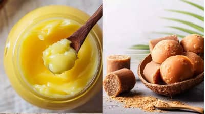 वर्षानुवर्ष भारतीय स्वयंपाकघरांमध्ये गुळाचा आणि तूपाचा भरपूर प्रमाणात वापर केला जातो. गूळ आणि तूपाच्या वापरामुळे जेवणाची चवच वाढत नाही तर हे दोन्ही पदार्थ तुमच्या आरोग्यासाठी खूप फायदेशीर मानली जाते. आयुर्वेदानुसार, गूळ आणि तूप याच्या मिश्रणाचे सेवन केल्यामुळे तुमच्या शरीराला योग्य पोषण मिळते त्यासोबतच तुमच्या अनेक आजारांना दूर ठेवण्यास मदत करते. गूळ आणि तूप या दोन्ही पदार्थांमुळे तुमच्या शरीरातील रोगप्रतिकारकशक्ती वाढण्यास मदत होते. चला तर जाणून घेऊया हिवाळ्यात गूळ आणि तूपाचे एकत्र सेवन केल्यामुळे तुमच्या आरोग्याला नेमकं काय फायदे होतात.