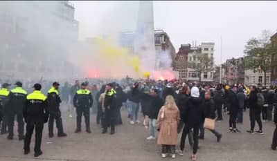 नेदरलँड्सची राजधानी ॲमस्टरडॅम येथे गुरुवारी रात्री इस्रायली समर्थकांवर झालेल्या हल्ल्यात अनेक लोकं जखमी झाले आहेत. त्यापैकी पाच जणांना रुग्णालयात दाखल करण्यात आले आहे. सॉकर सामन्यादरम्यान हे हल्ले सुरू झाले. स्टेडियमच्या बाहेरही इस्रायली लोकांना लक्ष्य करण्यात आले. युरोप लीगचा हा सामना Ajax आणि Maccabi तेल अवीव संघांमध्ये होता. संपूर्ण सामन्यात जोरदार हंगामा पाहायला मिळाला. पोलिसांनी 62 हल्लेखोरांना अटक केली आहे. आता माहिती अशी आहे की, ॲमस्टरडॅममध्ये प्रचंड पोलीस तैनात असूनही, इस्रायली संघाच्या समर्थकांवर अनेक ठिकाणी हल्ले करण्यात आले.