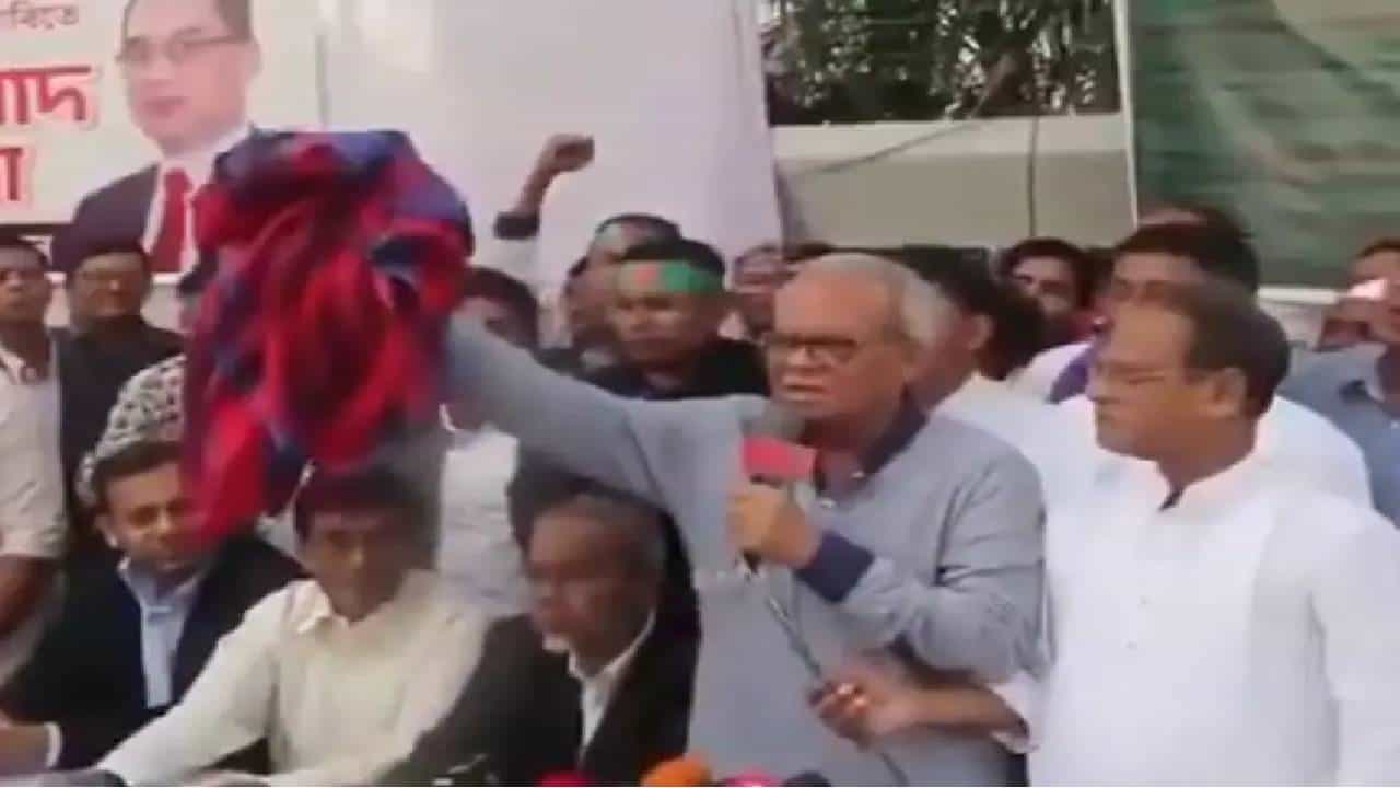 Bangladesh Hindus : दिवसेंदिवस बांग्लादेशात भारतविरोध वाढत चालला आहे. आता तिथल्या बांग्लादेश नॅशनलिस्ट पार्टीच्या रूहुल कबीर रिजवी या नेत्याने उघडपणे भारताला ललकारण्याचा प्रयत्न केला आहे. विरोध म्हणून त्याने त्याच्या पत्नीची भारतीय साडी जाळली.