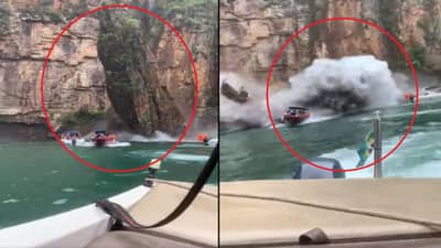 मिनास जरेस (Minas Gerais) राज्यातील कॅपिटोलिओ कॅन्यन्स (Capitolio Canyons) या प्रसिद्ध पर्यटन स्थळावर हा अपघात झाला. खडकांचा बुरुज अचानक उंच डोंगर कड्यावरुन तुटला. त्याखालून तलावातून जाणाऱ्या दोन मोटरबोटवर हा खडक कोसळल्याने अपघात झाला. त्यानंतर मोठा धुरळा उडाल्याचं व्हिडीओमध्ये दिसत आहे. अपघातानंतर बोट पाण्यात उलटल्याची माहिती आहे. या घटनेचा व्हिडीओ सोशल मीडियावर व्हायरल झाला आहे.