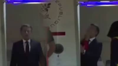 सध्या व्हायरल होत असलेल्या कथित व्हिडीओत एक विमान दिसत आहे. या विमानात इमॅन्यूएल मॅक्रॉन आणि त्यांची पत्नी ब्रिगिट आहेत. हे दोघेही विमानातून उतरणार होते. त्याआधी त्यांच्यासोबतच्या एका अधिकाऱ्याने विमानाचा दरवाजा उघडला. याच वेळी इमॅन्यूएल मॅक्रॉन आणि त्यांची पत्नी ब्रिगिट यांच्यात काही संवाद चालू होता. याच संवादादरम्यान एक हात इमॅन्यूएल मॅक्रॉन यांच्या गालावर आल्याचं दिसतंय. हा हात दूर करण्याचा प्रयत्न इमॅन्यूएल मॅक्रॉन करताना या व्हिडीओत दिसत आहेत. त्यानंतर अधिकाऱ्याने दरवाजा उघडल्याचे दिसताच मॅक्रॉन यांनी समोर त्यांच्या स्वागतासाठी आलेल्या लोकांना तसेच इतर अधिकाऱ्यांना हात वर करून अभिवादन केल्याचं या व्हिडीओमध्ये दिसत आहे.