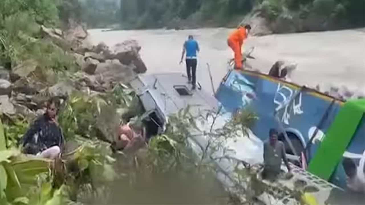 #WATCH | Nepal | An Indian passenger bus with 40 people onboard has plunged into the Marsyangdi river in Tanahun district, confirms Nepal Police.