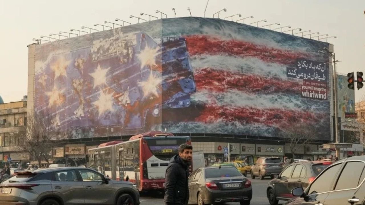गेल्या काही काळापासून अमेरिका आणि इराण यांच्यातील तणाव वाढलेला आहे. दोन्ही देशांमध्ये कोणत्याही क्षणी युद्ध पेटण्याची शक्यता आहे. दोन्ही देशांकडून युद्धाची तयारी सुरू असल्याचे पहायला मिळत आहे. अशातच आता इराणने संपूर्ण जगाला एक मोठा संदेश दिला आहे. इराणी अधिकाऱ्यांनी राजधानी तेहरानमधील एंगेलाब स्क्वेअरमधील एका मोठ्या बिलबोर्डवर एक पोस्टर लावले आहे. यातून अमेरिकेला गंभीर इशारा दिला आहे. या पोस्टरमध्ये नेमकं काय आहे ते सविस्तर जाणून घेऊयात.