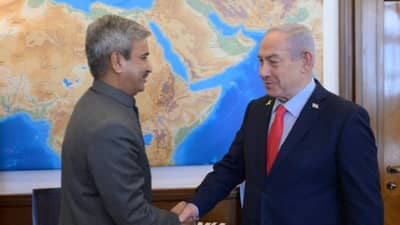 डोनाल्ड ट्रम्प यांच्यासोबत सुरु असलेल्या टॅरिफ वादात नेतन्याहू यांनी भारताच्या रणनितीक भूमिकेच पूर्णपणे समर्थन केलं आहे. ते असं सुद्धा म्हणालेत की, ‘भारत एक मजबूत भागीदार आहे, ही वॉशिंग्टन डिसीमध्ये समज आहे’ इस्रायलचे पंतप्रधान बेंजामिन नेतन्याहू यांनी गुरुवारी इस्रायलमधील भारतीय राजदूत जे पी सिंह यांची भेट घेतली. या बैठकीत दोन्ही नेत्यांनी द्विपक्षीय संबंध अधिक भक्कम करणं, खासकरुन संरक्षण आणि आर्थिक क्षेत्रात सहकार्य वाढवण्यावर चर्चा केली. जेरुसलेम येथील पंतप्रधान कार्यालयात ही बैठक झाली. यावेळी नेतन्याहू यांनी भारत दौऱ्याची इच्छा व्यक्त केली.