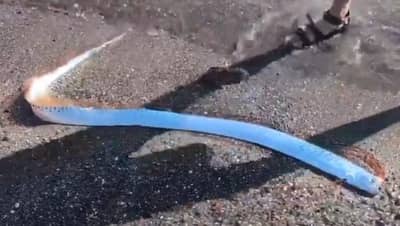 या संदर्भात AccuWeather यांनी एक्सवर एक व्हिडीओ देखील शेअर केला आहे. या व्हिडीओत एक ऑरफिश समुद्रातून किनाऱ्याकडे झेपावताना दिसला आहे. परंतू या विचित्र माशाचा आकार ओअर फिश प्रजातीच्या इतर माशांहून भिन्न आहे. हा मासा लहान आहे. हा मासा समुद्रातून बाहेर पडताच लागलीच मृत पावतो. समुद्र किनाऱ्यावरील लोकांनी या माशाला पाहीले आणि त्याला पुन्हा पाण्यात ढकलण्याचा प्रयत्न केला. परंतू वाचू शकला नाही. या माशाचा आकार थोडा वेगळा आहे.त्याच्या डोक्यावर एक लाल रंगाचे हाड आहे.