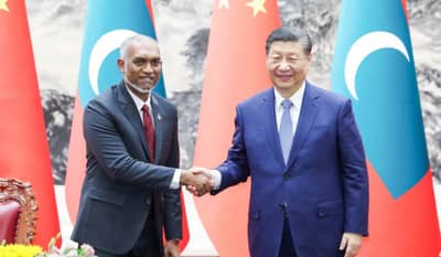 Maldive china deal : चीनने सोमवारी द्विपक्षीय संबंधांना चालना देण्यासाठी मोफत लष्करी मदत देण्यासाठी मालदीवसोबत संरक्षण सहकार्य करारावर स्वाक्षरी केली. राष्ट्राध्यक्ष मोहम्मद मुइज्जू यांनी मालदीवमधून भारतीय लष्करी जवानांना माघारी बोलवण्याची सूचना केली होती. मालदीवचे संरक्षण मंत्री मोहम्मद घसान मौमून यांनी दोन्ही देशांमधील संरक्षण सहकार्य वाढविण्याबाबत चर्चा करण्यासाठी चीनच्या आंतरराष्ट्रीय लष्करी सहकार्य कार्यालयाचे उपसंचालक मेजर जनरल झांग बाओकून यांची भेट घेतली.