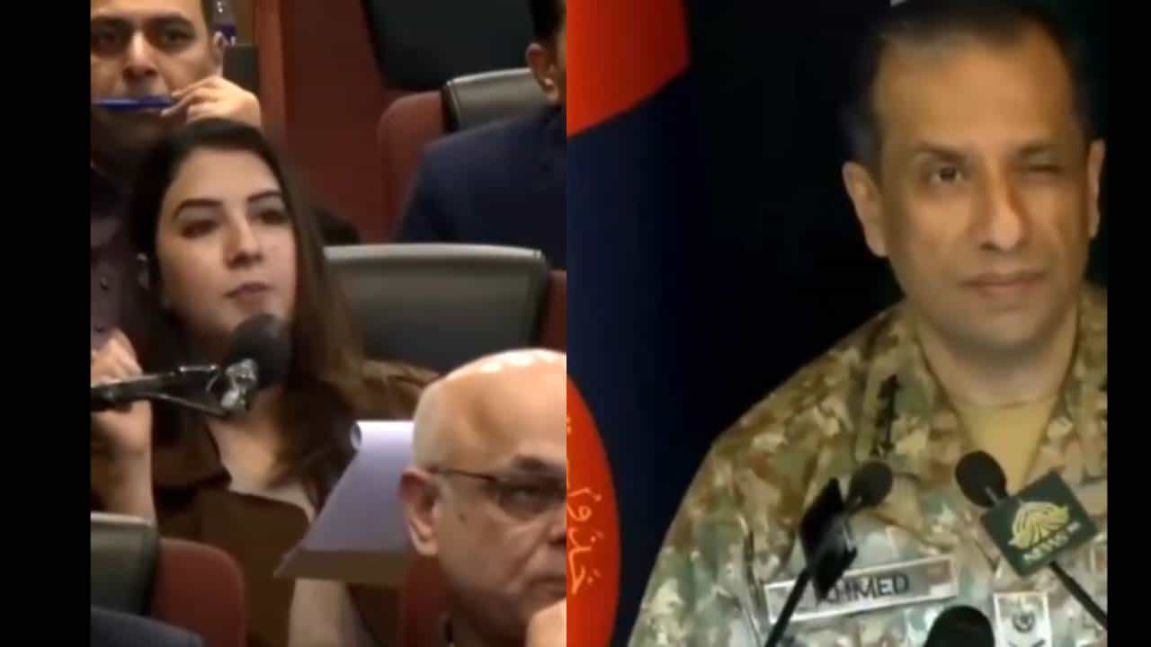Pakistan’s Army’s DG ISPR winking at a female journalist after she questioned why they are being labelled as funded by Delhi.