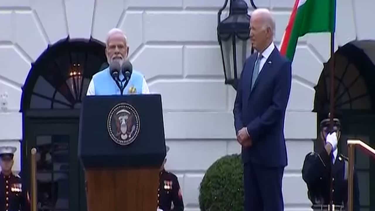 “मी भारतीय आणि अमेरिकेच्या नागरिकांना सर्वांना नमस्कार करतो. मी सर्वात आधी राष्ट्राध्यक्ष जो बायडन यांच्या मैत्रीपूर्ण स्वागत आणि दूरदृष्टीपूर्ण संबोधनासाठी त्यांचं हृदयापासून आभार व्यक्त करतो. व्हाईट हाऊसमध्ये स्वागत समारंभ पार पडतोय, हा खरंतर 140 कोटी भारतीयांचा सन्मान आहे. त्यांचा हा गौरव आहे. अमेरिकेत वास्तव्यास असलेल्या 40 लाखांपेक्षा जास्त भारतीयांचा देखील हा सन्मान आहे. या सन्मानासाठी मी राष्ट्राध्यक्ष जो बायडन यांचे आभार मानतो”, असं पंतप्रधान नरेंद्र मोदी म्हणाले.