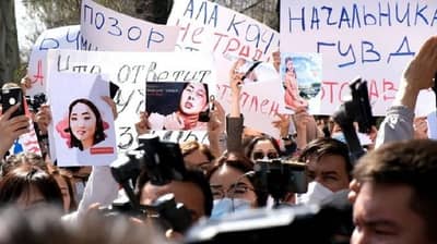 (protest in Kyrgyzstan because kidnapping and murder of women for marriage people think that it is tradition)