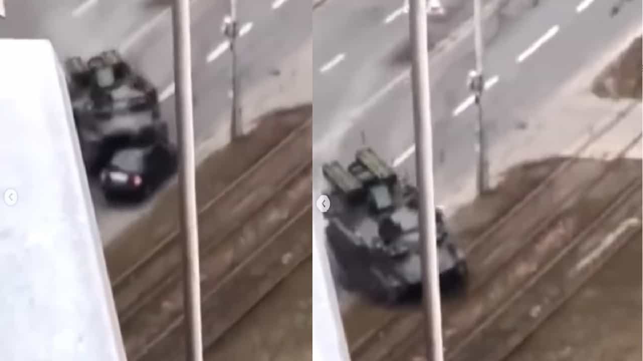 Russia Ukraine Crisis : रशियानं (Russia) यूक्रेनविरोधात (Ukraine) युद्ध पुकारलं आहे. रशियानं यूक्रेनच्या महत्त्वाच्या शहरात हल्ले केले आहेत. यूक्रेनच्या राजधानी कीवसह (Kyiv) खारकीव या प्रमुख शहरांवर रशियाकडून हल्ले करण्यात आलेले आहेत. रशियानं सुरुवातीला आम्ही नागरी वस्ती अरणाऱ्या ठिकाणी हल्ले करत नसल्याचं जाहीर केलं होतं. मात्र, प्रत्यक्षात नागरी वस्ती असणाऱ्या ठिकाणी हल्ले सुरु ठेवल्याचं दिसून येत आहेत. रशियाचं सैन्य यूक्रेनच्या विविध शहरांमध्ये रणगाडे, टँक, ट्रकसह फिरताना दिसून येत आहेत. रशियन सैन्य आणि यूक्रेनचे सामान्य नागरिक यांच्यात संघर्ष होत असताना दिसत आहे. यूक्रेनचे नागरिक रशियन सैन्याला पकडत असताना देखील दिसून येत आहे. रशियन सैन्य आणि यूक्रेन नागरिक यांच्यातील संघर्षाचा एक व्हिडीओ समोर आला आहे. या व्हिडीओत रशियन सैन्याचा टँक रस्त्यावरुन फिरत आहेत. यापैकी एका टँकनं एका कारला चिरडलं असल्याचं समोर आलं आहे. त्या कारमध्ये एक व्यक्ती होता.