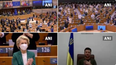 यूरोपीयन यूनियनमध्ये यूक्रेनचे राष्ट्रपती वोलोदिमीर झेलेन्स्की यांना स्टॅन्डिंग ओवेशन मिळाली. सर्वांनी जेलेन्स्की यांचं संबोधन शांतपणे ऐकून घेतलं. ‘आम्ही आमच्या जमिनीची सुरक्षा आणि आपल्या स्वातंत्र्याची लढाई लढत आहोत. आम्ही कुणी तोडू शकत नाही. आम्ही मजबूत आहोत. आम्ही यूक्रेनियन आहोत’, असं जेलेन्स्की म्हणाले.