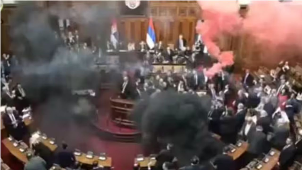 सर्बियन विरोधी पक्षाच्या खासदारांनी मंगळवारी संसदेच्या आत स्मोक ग्रेनेड आणि अश्रूधुराच्या नळकांड्या फेकल्या. विरोधी पक्ष सरकारी धोरणांचा निषेध करत होते. सरकारविरोधात आंदोलन करणाऱ्या विद्यार्थ्यांना विरोधी पक्षाचे खासदारही पाठिंबा देत होते. त्यावेळी विरोधी खासदारांनी स्मोक ग्रेनेड आणि अश्रूधुराच्या नळकांड्या फोडल्या. सर्बिया संसदेच्या अधिवेशनाचे थेट प्रसारण दूरचित्रवाणी होते. त्यामुळे संसदेतील हा अभूतपूर्व गोंधळ संपूर्ण जगाने पाहिला.