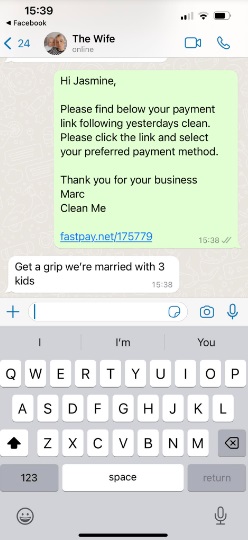 स्क्रीनशॉटमध्ये “हाय जस्मिन, कृपया कालच्या स्वच्छतेनंतर तुमची पेमेंट लिंक शोधा. कृपया लिंकवर क्लिक करा आणि तुमची पसंतीची पेमेंट पद्धत निवडा. तुमच्या सेवेबद्दल धन्यवाद.” असे लिहिल्याचे दिसत आहे. त्याखाली पत्नीने दिलेलं उत्तरही त्याने शेअर केले आहे.