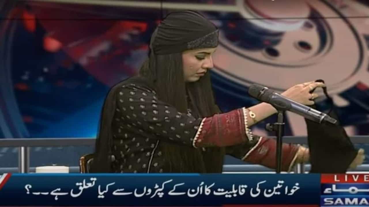 पाकिस्तानातील समा टीव्हीच्या या महिला अँकर चक्क हिजाब घालणं किती बरोबर आहे हे सांगण्यासाठी एक बुलेटीन काढतात. आणि टीव्हीवर सर्वांसमोर हिजाब घालून तालिबान्यांच्या कायद्याचं समर्थन करतात.