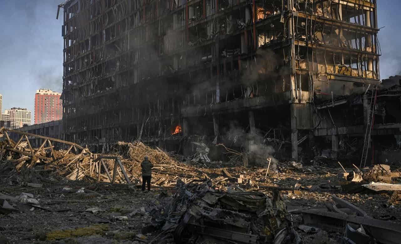 चार आठवड्यांपासून रशियाचं सैनिक युक्रेनमधील महत्त्वाची ठिकाणी हल्ले करीत आहे. नुकताच रशियाच्या सैन्याने राजधानी कीव मधील एका शॉपिंग मॉलवरती जोरदार हल्ला केल्याचं व्हिडीओतून स्पष्ट दिसत आहे. बॉम्ब हल्ल्यामुळे शेजारी असणाऱ्या शाळेचं सुध्दा नुकसान झालंय. युद्ध सुरू होणाऱ्या युक्रेनच्या राजधानीत साधारण तीस लाख लोक राहायला होती. पण युद्ध सुरू झाल्यानंतर लोकांनी शेजारच्या देशात आश्रय घेतला आहे. त्याचबरोबर सध्या युक्रेनमध्ये असलेली लोक भीतीच्या सावटाखाली आयुष्य जगत आहेत. युक्रेनच्या महत्त्वाच्या शहरातील अत्यंत महत्त्वाची ठिकाणे, कार्यालये, अणुऊर्जा केंद्र रशियाने ताब्यात घेतली आहेत. तर काही ठिकणं उद्धवस्त देखील केली आहेत. युक्रेनमध्ये सगळीकडे धुरांचे लोट दिसत असल्याने नागरिकांचे आरोग्य देखील धोक्यात आले आहे.