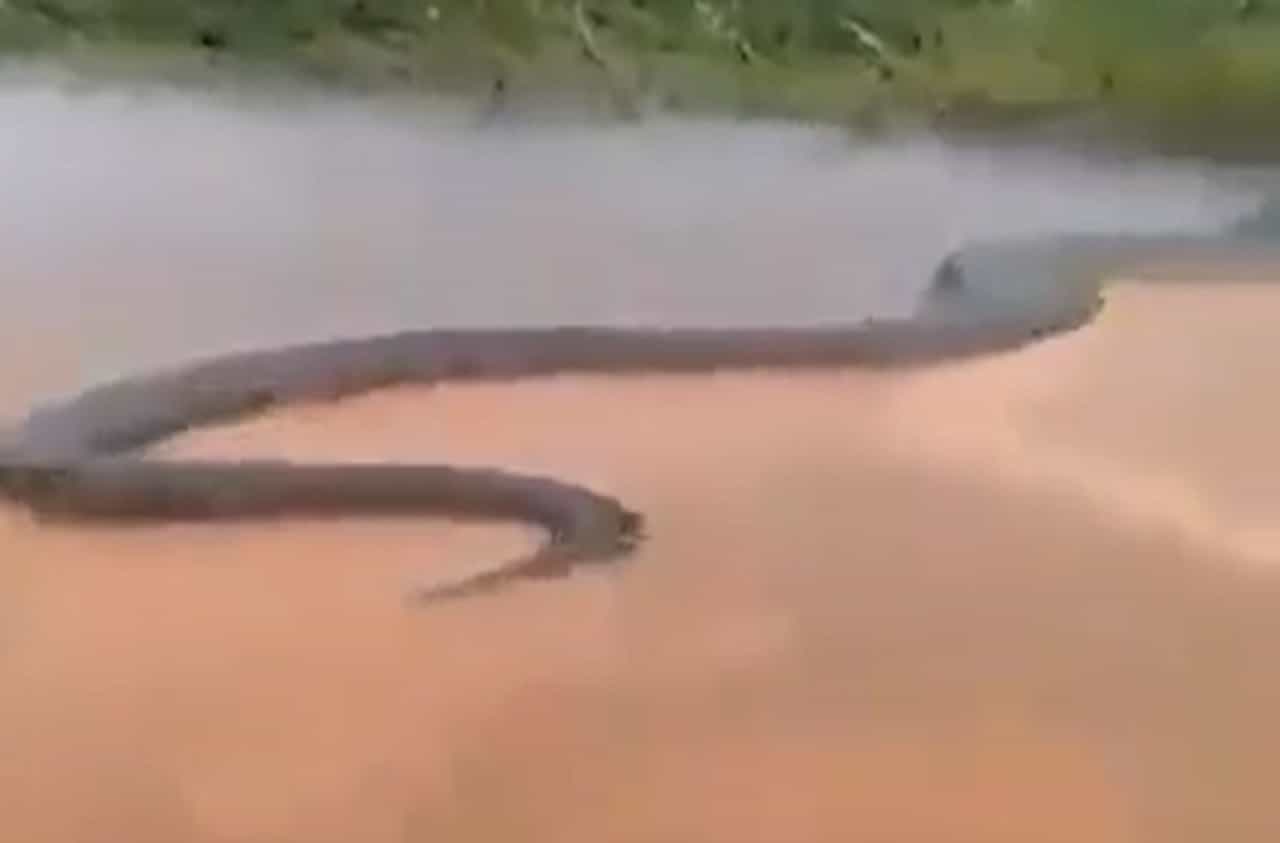 (viral video of anaconda 50 foot anaconda crossing river in brazil)