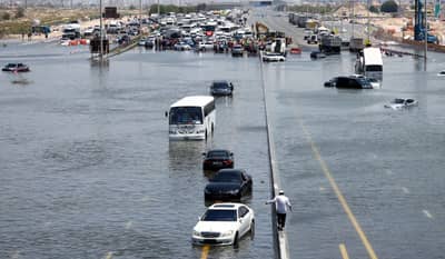 दुबई : संयुक्त अरब अमिराती (UAE) आणि ओमानमध्ये विक्रमी पाऊस झाला. त्यामुळे लोकांची चांगलीच तारांबळ उडाली. रस्त्यावर पाणी साचल्यामुळे वाहतूक कोलमडली. संपूर्ण शहरात पाणीच पाणी होते. लोक घरातच अडकून पडले होते एवढेच नाही तर दुबईहून दिल्लीला आणि इतर ठिकाणी जाणारी अनेक उड्डाणे देखील रद्द करावी लागली. कारण विमानतळावर ह पाणीच पाणी होते. UAE मधील भारतीय वाणिज्य दूतावासाने दुबई आंतरराष्ट्रीय विमानतळावर किंवा तेथून प्रवास करणाऱ्या भारतीय प्रवाशांना परिस्थिती सामान्य होईपर्यंत दुबईला किंवा यूएईच्या इतर शहरांमध्ये प्रवास टाळण्याचा सल्ला दिला आहे.