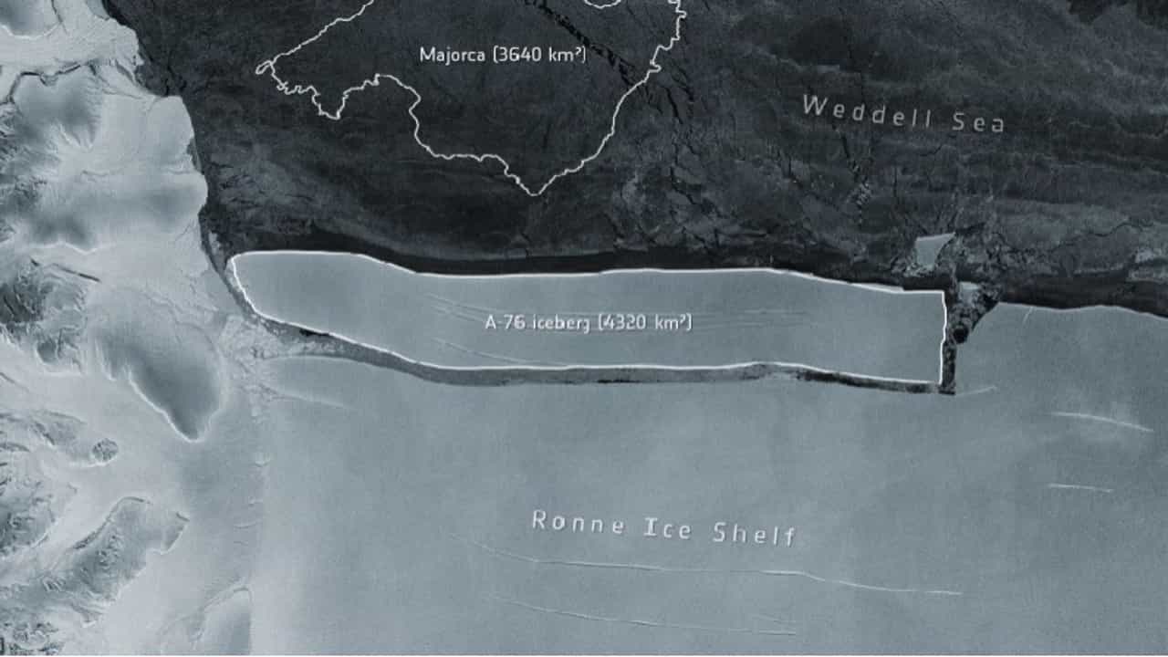 युरोपियन स्पेस एजन्सीने दिलेल्या माहितीनुसार, हा बर्फाचा तुकडा अंटार्क्टिकामधील रॉनी आईस शेल्फच्या पश्चिमेच्या बाजूने तुटला आहे जो सध्या वेडेलच्या समुद्रात तरंगत आहे. संशोधकांनी हा हिमखंडाला A 76 असं नाव दिलं आहे. या हिमखंडाचा आकार जाणून घेण्यासाठी सॅटेलाईट मेजरमेंट टेक्नोलॉजीची मदत घेण्यात आलीय.