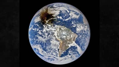 नवी दिल्ली | 20 ऑक्टोबर 2023 : नासाच्या वातावरणाचा अभ्यास करणाऱ्या अंतराळ स्थानकाने तब्बल 15 लाख किमीवरुन पृथ्वीचा काढलेला एक फोटो सध्या खूपच चर्चेत आला आहे. या फोटोत पृथ्वीच्या एका कोपऱ्या काळी सावली पसरली आहे. वास्तविक हा फोटो एका खगोलीय घटनेचा आहे. गेल्या आठवड्यात सुर्यग्रहण लागले होते. या सुर्य ग्रहणात चंद्राने सुर्य बिंबाला पूर्ण झाकल्याने ‘रिंग ऑफ फायर’ हा खगोलीय चमत्कार पाहायला मिळाला. भारतीयांना हे सुर्यग्रहण पाहायला मिळाले नाही. तेव्हा सुर्य अमेरिका आणि कॅनाडाकडे पृथ्वीच्या दुसऱ्या बाजूला होता. त्यावेळी नासाच्या अंतराळ स्थानकाने हे छायाचित्र काढले आहे.