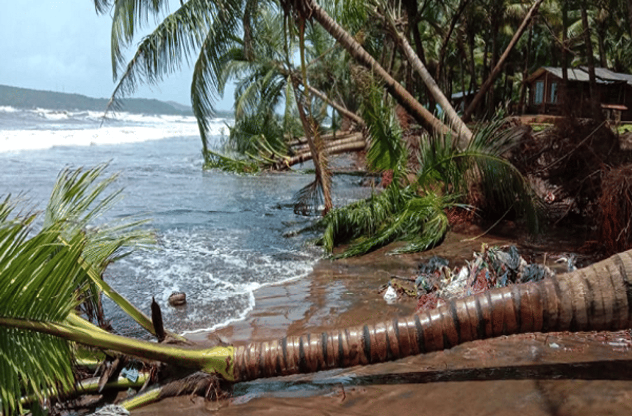 रत्नागिरीतल्या भाट्ये किनारी समुद्रांच्या लाटांमुळे रत्नसागर बीच रिसॉर्ट जवळ 35 नारळाच्या झाडांचे नुकसान झाले आहे (Coconut tree fall Ratnagiri).
