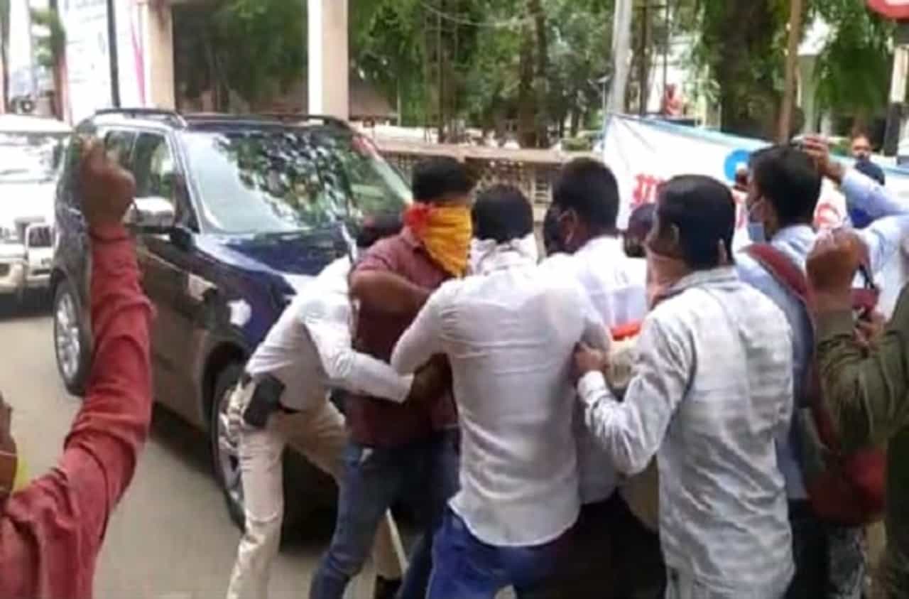 शैक्षणिक शुल्कमाफीसाठी ABVP आक्रमक, अब्दुल सत्तारांची गाडी रोखली, पोलिसांचा लाठीचार्ज