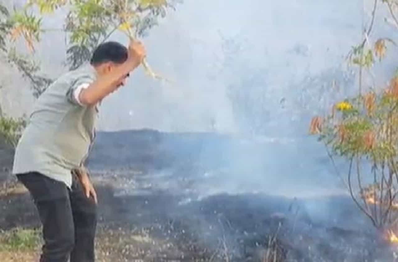 अभिनेते आणि वृक्षप्रेमी सयाजी शिंदे यांनी स्वत: आगीत उतरुन वणवा विझवण्याचा प्रयत्न (Sayaji Shinde extinguish tree fire) केला.