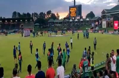 जोहान्सबर्ग (दक्षिण आफ्रिका) : भारत विरुद्ध बांगलादेश यांच्यात रविवारी (9 फेब्रुवारी) 19 वर्षाखालील विश्वचषक स्पर्धेचा अंतिम सामना झाला. या सामन्यात बांगलादेशने 3 विकेट्सनी टीम इंडियाचा पराभव केला. अंतिम सामना जिंकल्याच्या जोशात बांगलादेशच्या खेळाडूंचा स्वत:वरचा ताबा सुटला. आनंद साजरा करताना त्यांनी मैदानातील भारतीय खेळाडूंना शिवीगाळ केली. त्यामुळे दोन्ही संघाच्या खेळाडूंमध्ये धक्काबुक्की झाली. याप्रकरणावरुन बांगलादेशच्या खेळाडूंवर जगभरातील क्रिकेटप्रेमींकडून टीका केली जात आहे (Bangladesh players misbehave with Indian players).