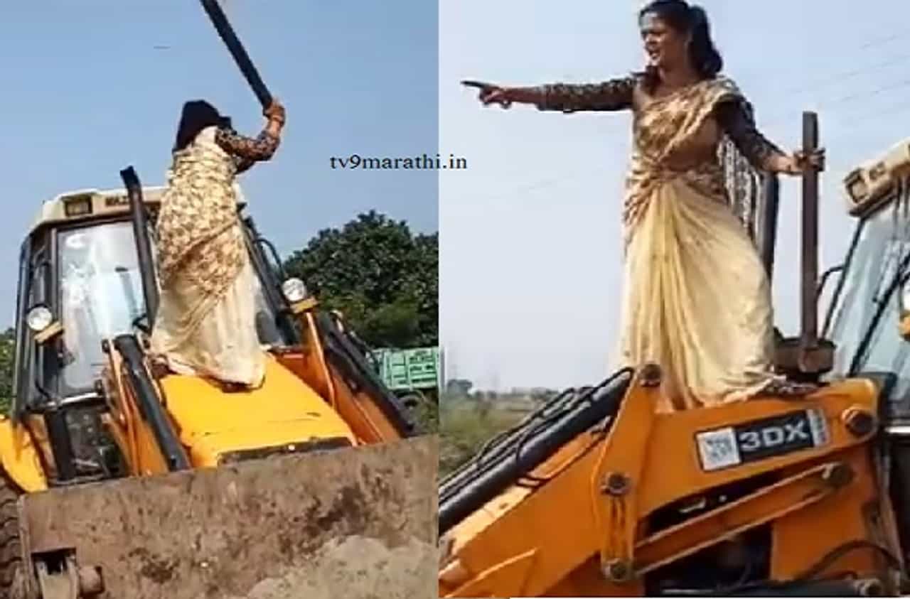 (Beed Swabhimani Shetkari Sanghatna Leader Sarika Gaikwad vandalize JCB)