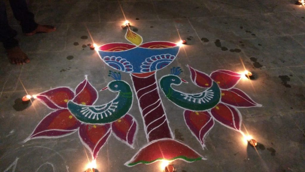 भालचंद्र मंदिराच्या परिसरात दीपावलीच्यानिमित्त रांगोळी स्पर्धेचे आयोजन करण्यात आले होते. रांगोळी स्पर्धकांनी सामाजिक विषयांवर रांगोळ्या रेखाटून वाहवा मिळवली.