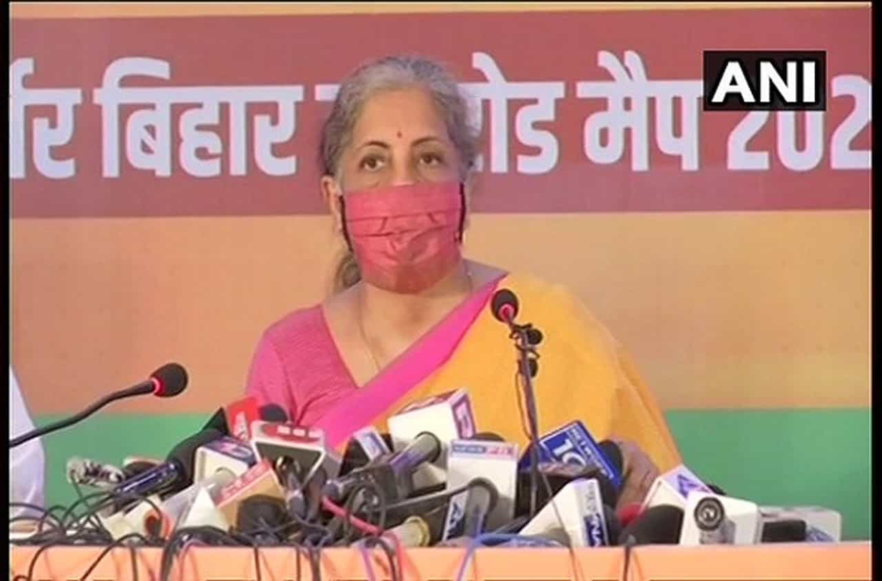 As soon as #COVID19 vaccine will be available for production at a mass scale, every person in Bihar will get free vaccination. This is the first promise mentioned in our poll manifesto: Union Minister Nirmala Sitharaman at the launch of BJP Manifesto for #BiharPolls pic.twitter.com/x4VjVmkA3Q
