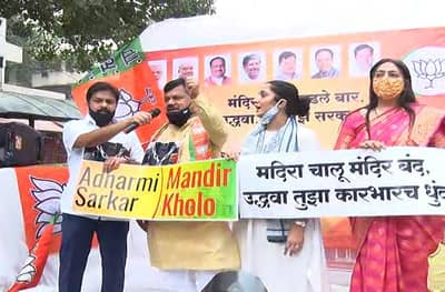 मंदिर उघडण्याच्या मागणीसाठी भाजपनं राज्यातील प्रमुख मंदिरासमोर आंदोलन केले.
