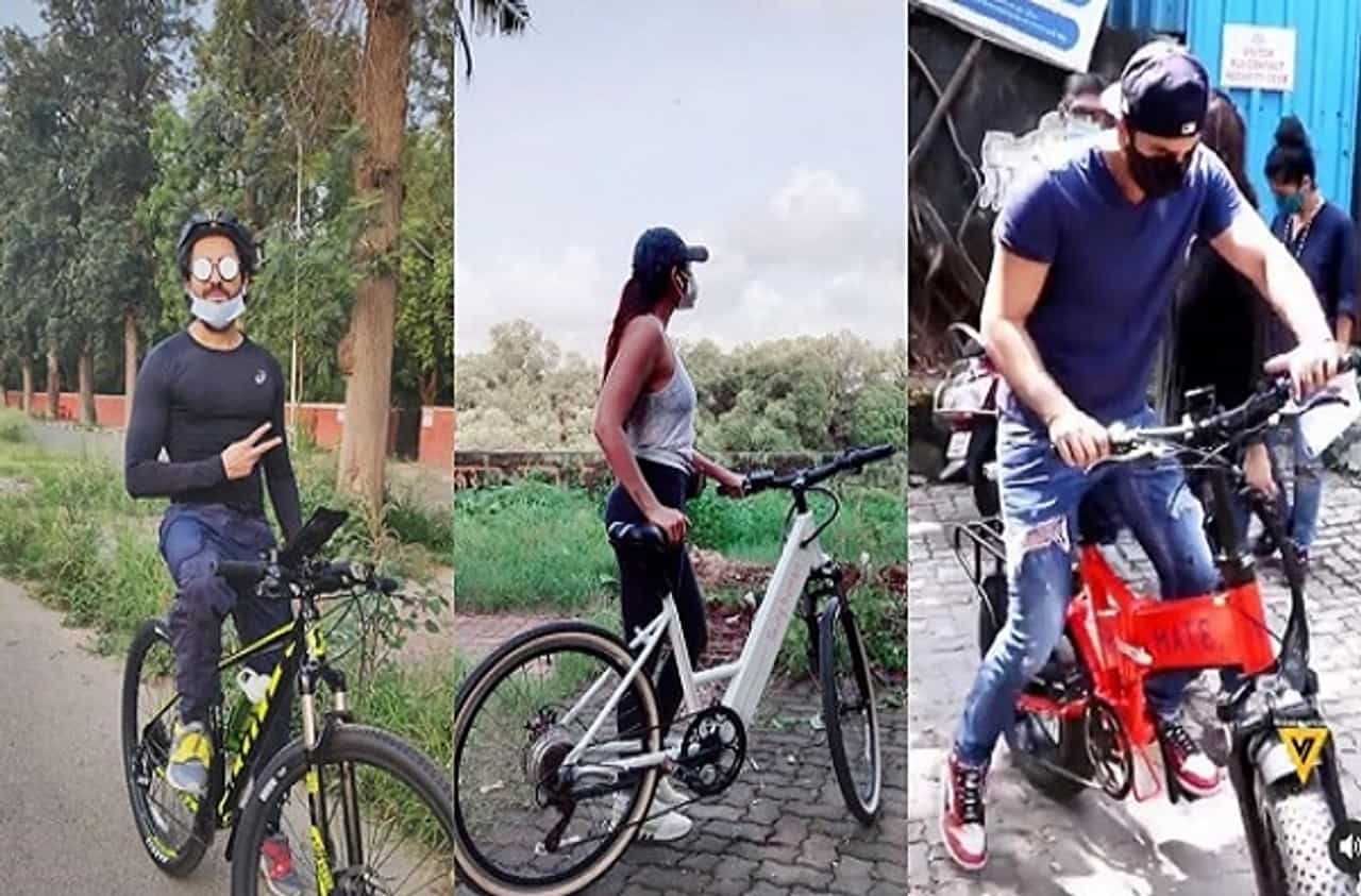 सलमान खान, रणबीर कपूर, आयुषमान खुराना, सारा अली खान अनेक कलाकार रस्त्यावर सायकल चालवताना दिसले. (Bollywood Celebrities Cycling during Lockdown)