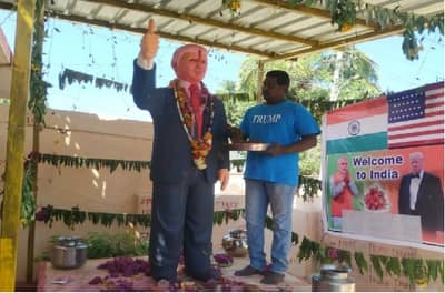 Telangana: Bussa Krishna, who had installed a 6-feet statue of US President Donald Trump last year and worshipped him, passes away due to cardiac arrest, in Medak. (In file pics – Bussa Krishna) pic.twitter.com/ucNm4pTHfj