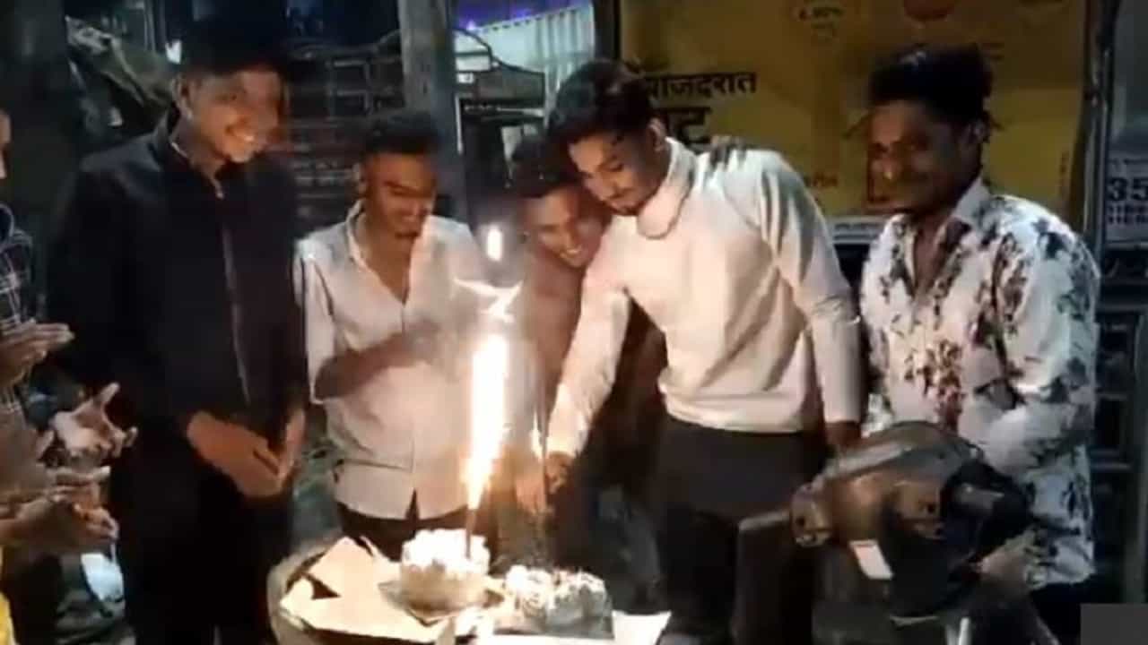 भर रस्त्यात लोखंडी कोयत्याने केक कापणं महागात, बर्थडे बॉयसह मित्रांवर गुन्हा