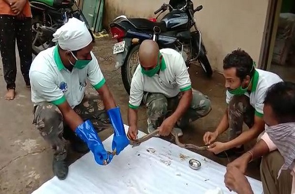 रस्त्याच्या कडेला असलेल्या वितळलेल्या डांबरात अडकून कोब्रा अर्धमेला झाला होता. सदस्यांनी या कोब्रा सापाला अलगद काढून त्याला शुश्रूषा केंद्रात आणले. कोब्रा सापाला व्यवस्थित हाताळून त्याच्या अंगावर असलेले डांबर स्वच्छ केले. यानंतर या कोब्रा सापाला नैसर्गिक अधिवासात मुक्त केले गेले.