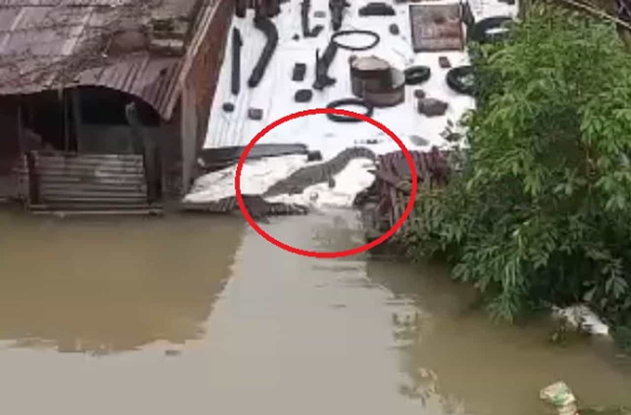 रायगडमधील पुरात मगरीचा थरार, पावसाच्या पाण्यातून थेट घराच्या छतावर