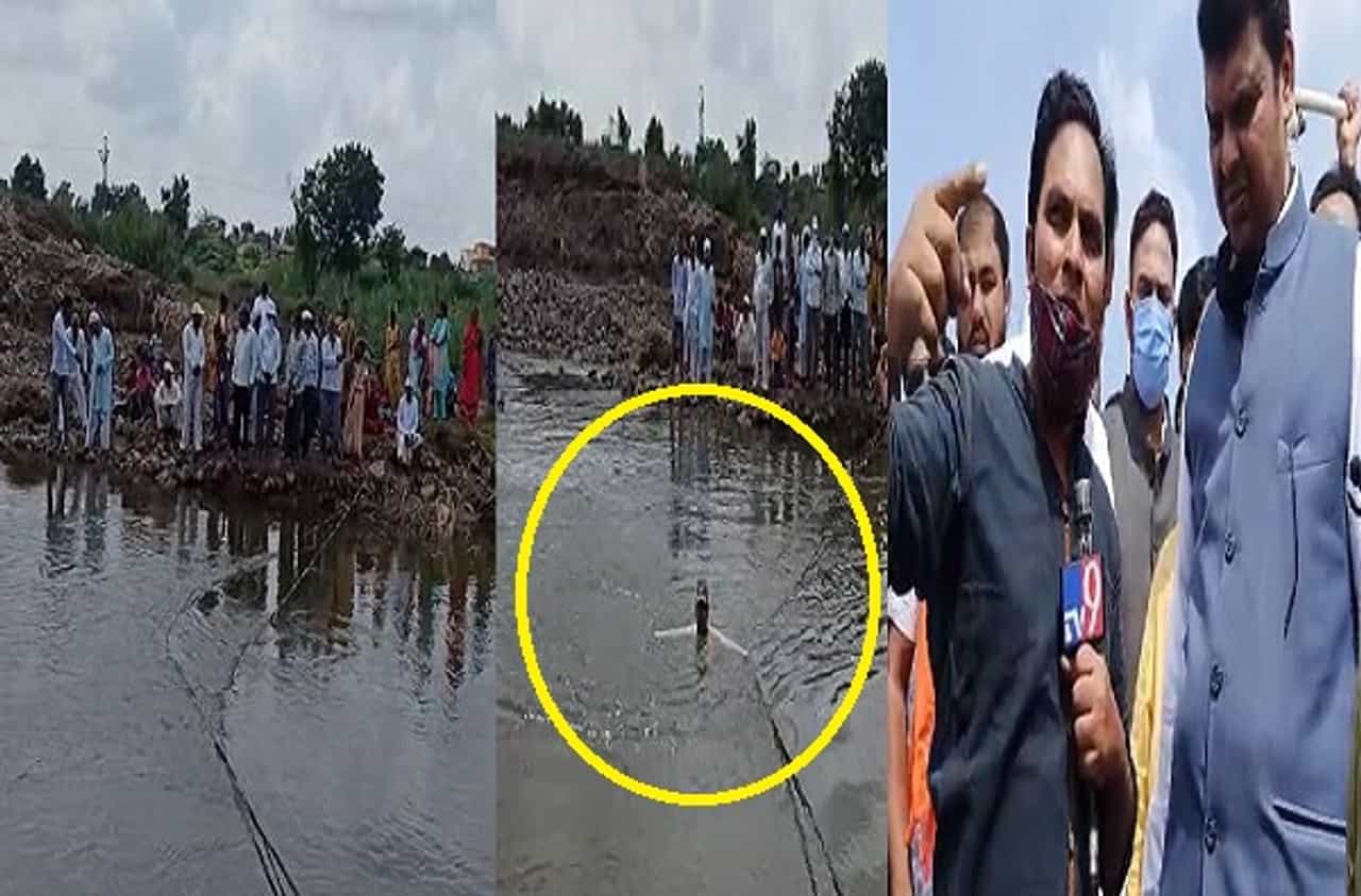 गावकरी पलिकडे, फडणवीस अलिकडे, पूल वाहून गेल्याने शेतकरी पोहत-पोहत फडणवीसांच्या भेटीला