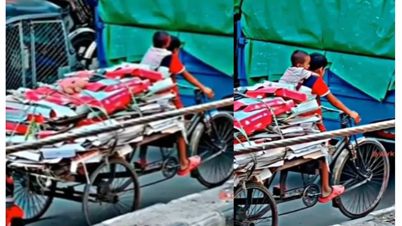 इंटरनेटवर हा व्हिडीओ प्रचंड व्हायरल होतोय. या व्हिडीओमध्ये एक मुलगा एका हातगाडीवरचं सामान ओढतोय. तो आपलं कर्तव्य बजावताना दिसतोय. या मुलाचा धाकटा भाऊ पाठीवर बसताना मोठ्या भावाला घट्ट पकडून बसलाय. हातगाडीवर सुद्धा खूप सामान आहे. जेव्हा घरातल्या मोठ्या मुलावर जबाबदारी येते तेव्हा तो कशाचाही विचार करत नाही. तो त्यालाही मिळणाऱ्या सगळ्या सुविधा सोडून घर उभं करण्यात सगळं लावतो.