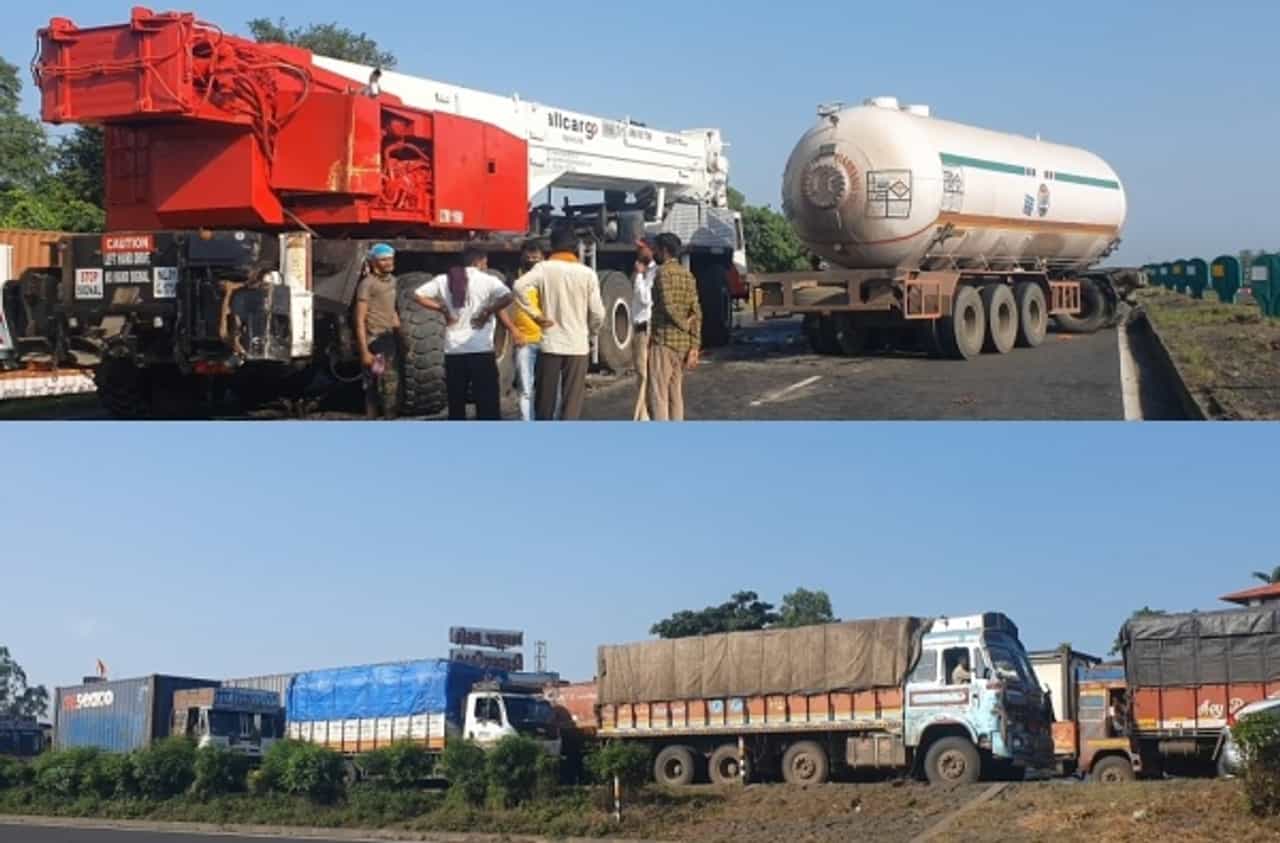 आंबोलीमध्ये गॅस टँकर आणि क्रेनमध्ये अपघात, मुंबई-अहमदाबाद महामार्गावर 3 किमीपर्यंत वाहतूक कोंडी
