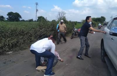 (Girish Mahajan helps Bike accident victim in Jalgaon)