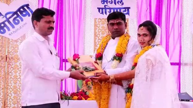 हातामध्ये भारतीय संविधान घेऊन उभे असलेले हे लोक पाहून तुम्हाला एखादा कार्यक्रम असल्याचं वाटत असावा. मात्र हा कार्यक्रम नाही, तर हा एक मंगल परिणय आहे. एरवी एखाद्या विवाह प्रसंगात गेल्यानंतर नव वधू-वरांना भेटवस्तू देण्याची आपली तशी जुनीच परंपरा आहे. मात्र येथे ही परंपरा मोडीत काढली आहे. इथे मात्र वधू-वरांकडील येणाऱ्या वऱ्हाडी मंडळींना गिफ्ट करण्यात आले. हे गिफ्ट दुसरं-तिसरं नाही तर भारतीय संविधान देण्यात आले.